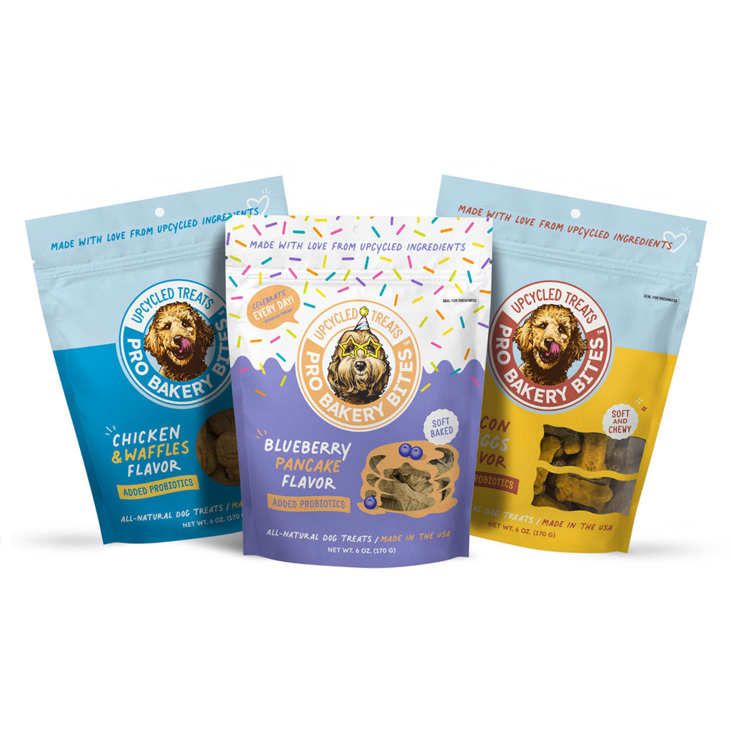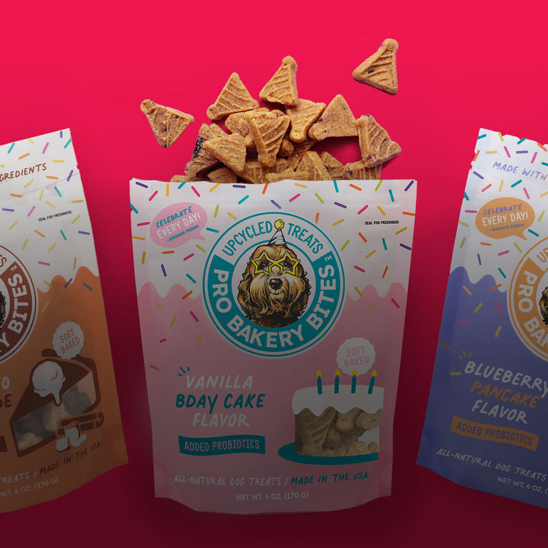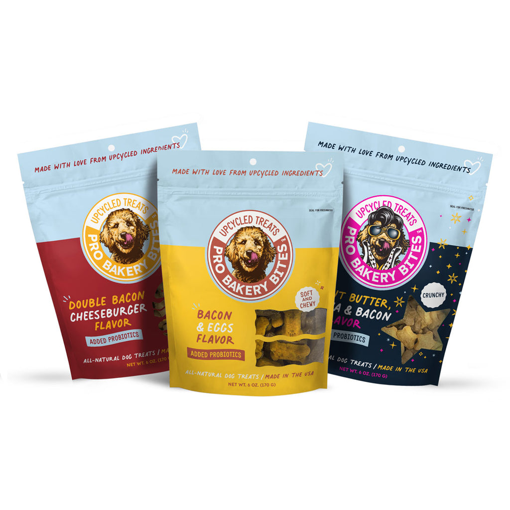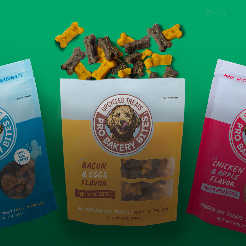 At Ag-Alchemy, to say we love dogs almost seems like an understatement. It’s the why behind our Pro Bakery Bites treats. We upcycle not-quite-perfect baked goods from a family owned specialty bakery – adding tummy friendly probiotics and natural ingredients, fruits, veggies and proteins. Our Pro Bakery Bites are baked fresh in our ovens, right here in the USA to create the great-tasting treats dogs love.