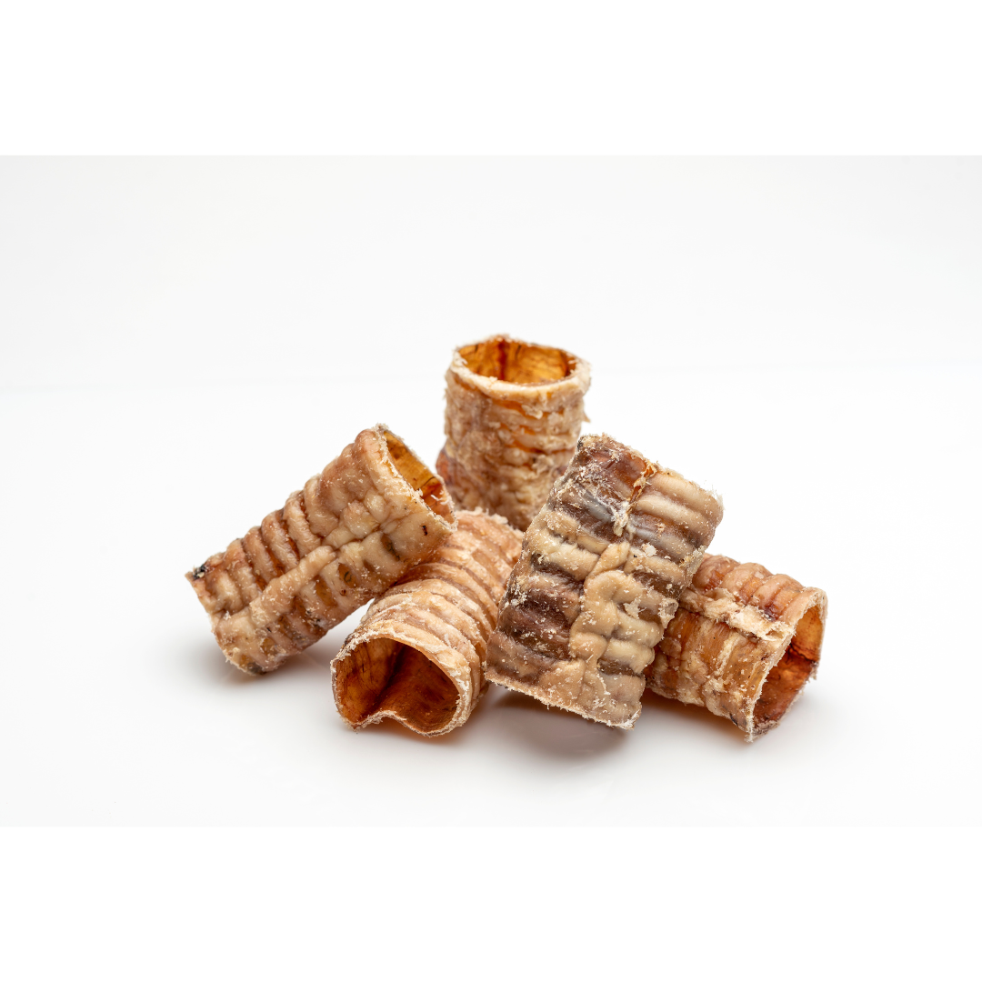 100% all natural USA beef trachea. Safe for all sized dogs.