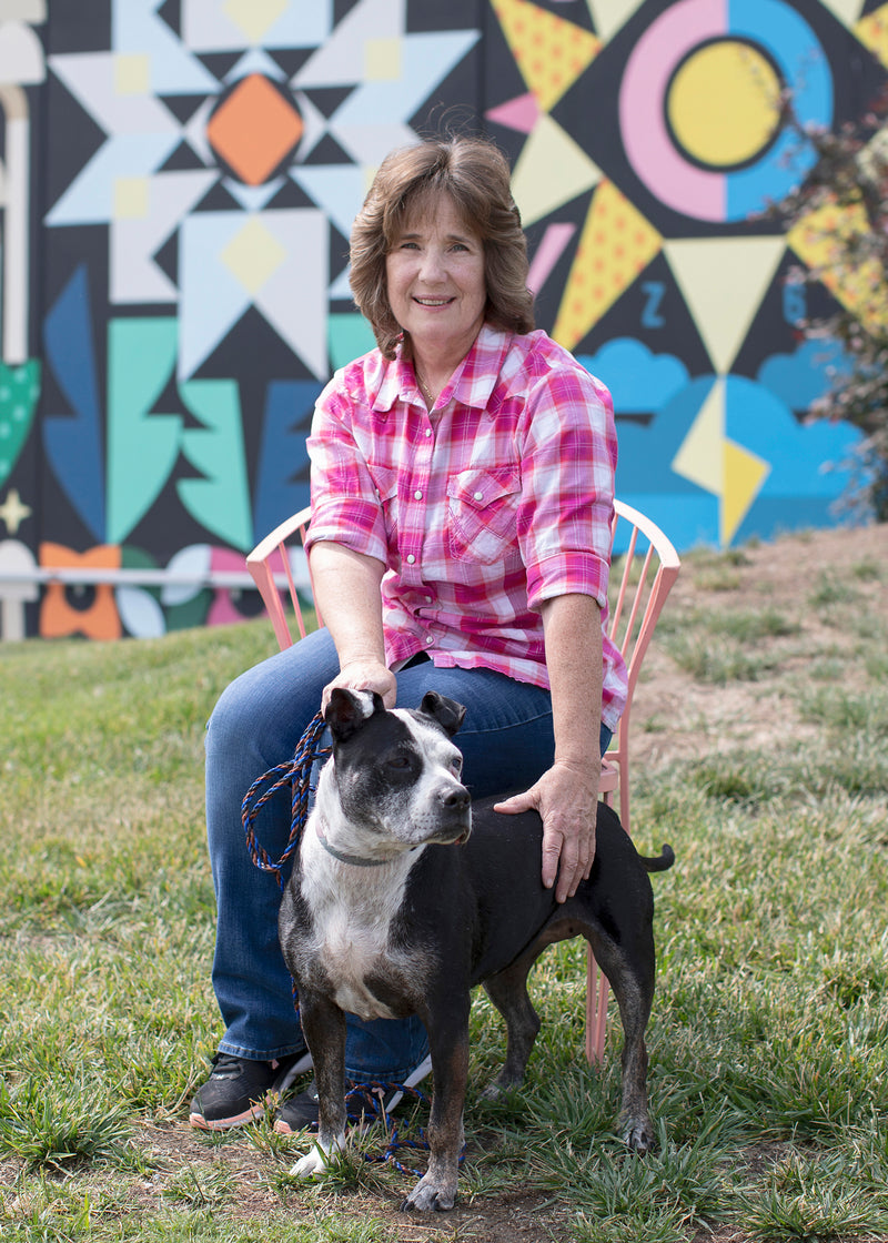 Kerri and her teenage grandson share a home with their 12-year-old pitbull (Cookie) and 2 guinea pigs (Wilbur and Poppy Seed).